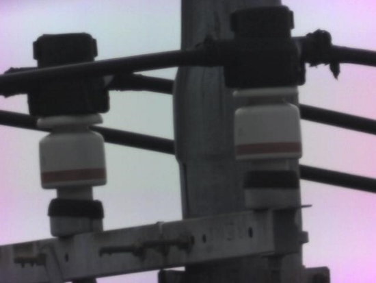 中央の遠くの電柱のガイシを撮影。 |