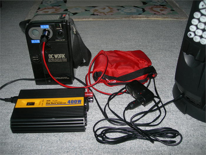 | 準備しておいた、ポータブル電源に接続して駆動確認の様子です。 |